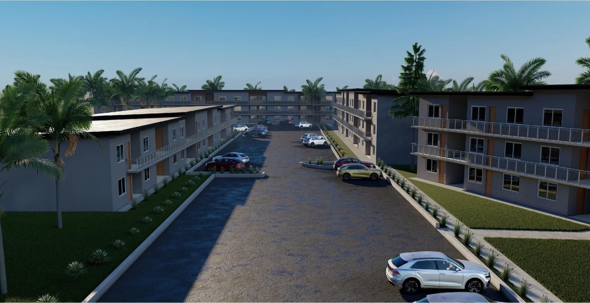Hualalai Court is a 104-unit affordable workforce housing development with (1) two-story structure and (3) three-story structures.